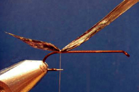 seguido del montaje de la cola de pavo moteado. Fíjelo fuertemente con
