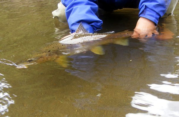 se puede pescar fundamentalmente truchas farios o marrones, algunas de las cuales pueden