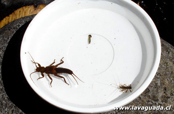 Comparación tamaño de ninfas de Plecóptera, Tricópera y Efemeróptera